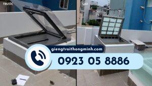 Lắp Giếng trời thông minh mở tự động bằng điều khiển trên hệ khung mái kính