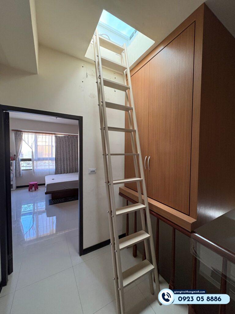 - Khoảng cách bậc: Khoảng 25 cm, phù hợp tiêu chuẩn thang dân dụng.