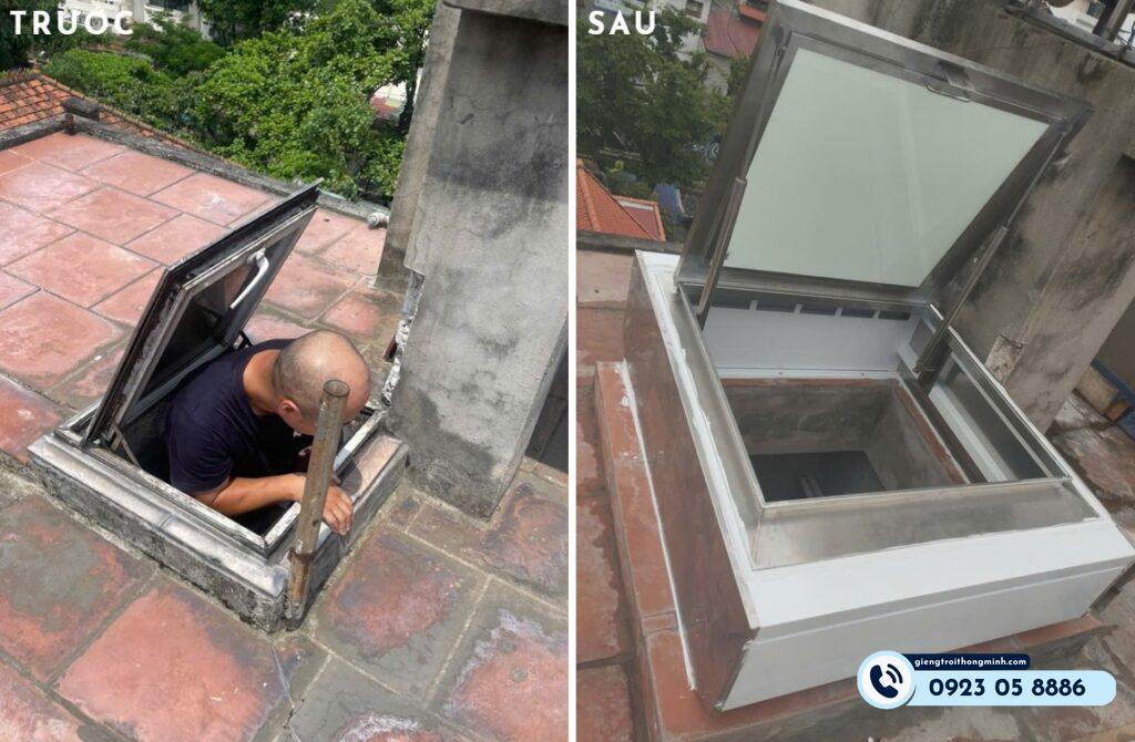 Trong nhiều trường hợp, nắp thăm mái không chỉ đơn thuần là lối lên mái mà còn có thể được thiết kế như một nắp đậy giếng trời hoặc nắp giếng trời đa năng. Giải pháp này mang lại lợi ích kép: vừa cung cấp ánh sáng tự nhiên và thông gió cho không gian bên dưới như một giếng trời thực thụ, vừa đảm bảo khả năng tiếp cận mái nhà khi cần thiết. Việc lựa chọn một nắp đậy giếng trời có cơ chế đóng mở linh hoạt, chất liệu truyền sáng tốt và khả năng chống thấm hiệu quả là điều cần được ưu tiên.