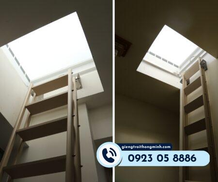 Để việc tiếp cận khu vực có lắp đặt giếng trời thông minh (ví dụ, để vệ sinh kính) hoặc đi qua nắp thăm trần lên tầng áp mái, sân thượng trở nên dễ dàng, thang gấp thông minh là lựa chọn không thể hoàn hảo hơn: