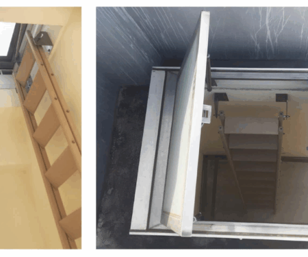 Giải pháp toàn diện cho không gian áp mái và tầng thượng: Combo Giếng trời thông minh Nắp thăm trần và Thang gấp thông minh 3m tiện lợi