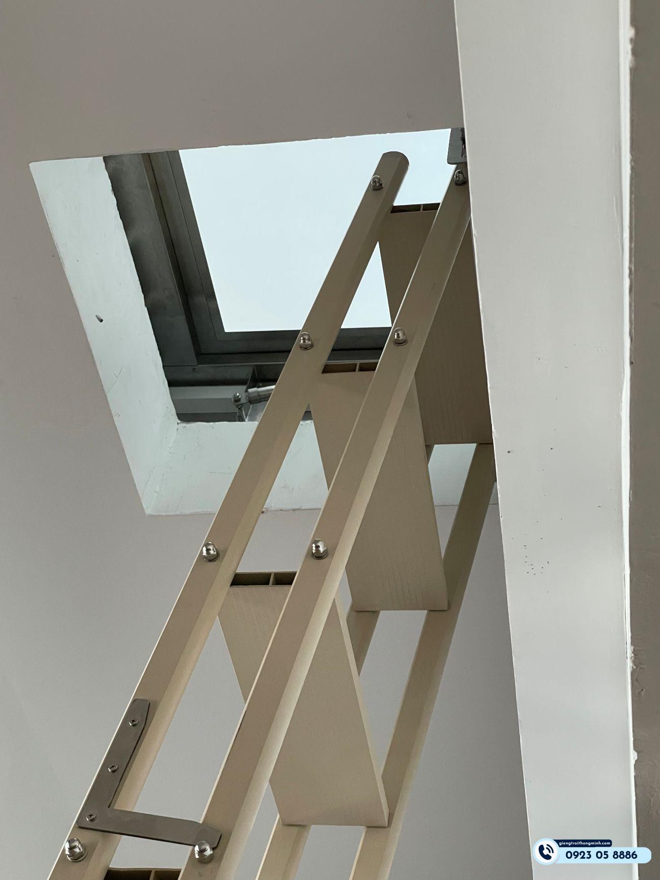 - Tiếp cận và bảo trì giếng trời dễ dàng: Thang gấp cung cấp lối lên an toàn và tiện lợi qua nắp thăm trần (nếu có) để vệ sinh, bảo dưỡng giếng trời.